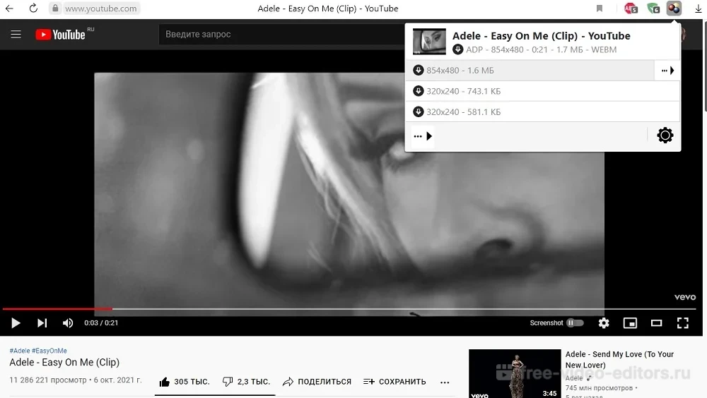 - Установите аддон и перейдите на страницу с видеоклипом.