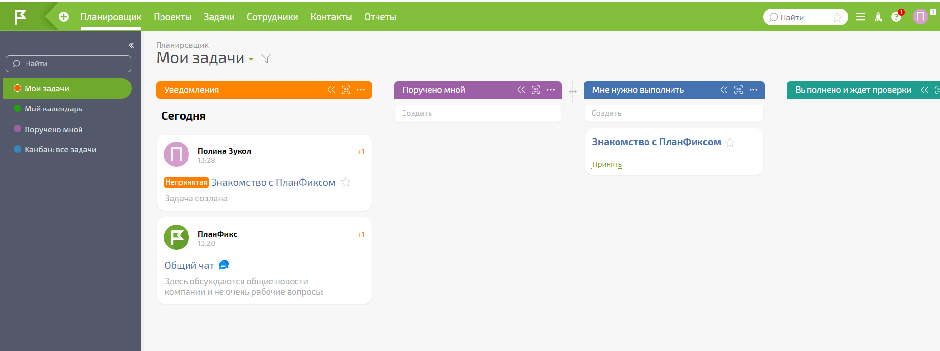 Внутри системы можно обсуждать проекты и задачи, составлять планы, отчитываться по результатам и т.д.