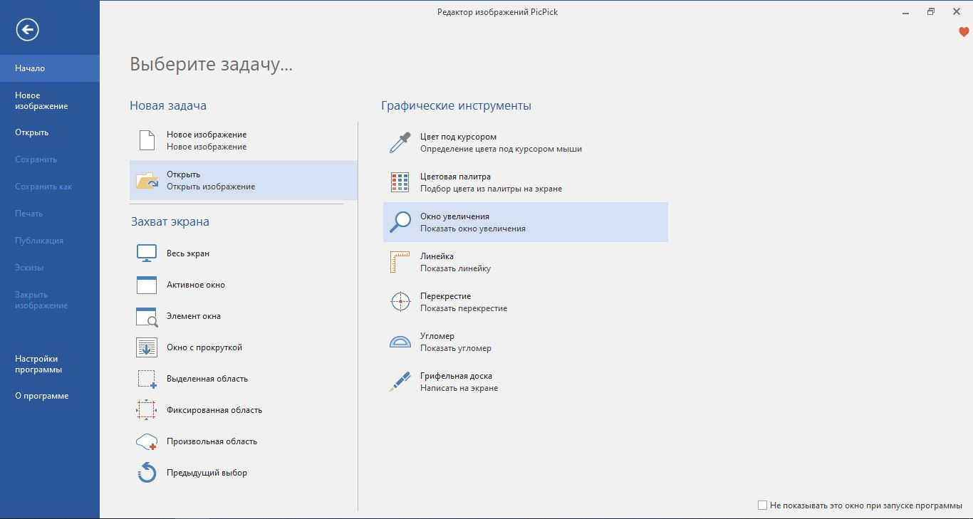- Установите PicPick и запустите его, дважды кликнув по ярлыку.В правой колонке выберите вариант «Окно с прокруткой».