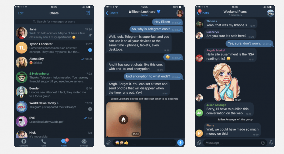 Если ты хочешь использовать Telegram, то для защиты переписки не забывай создавать секретные чаты. В мобильной версии для этого нужно выбрать команду New Secret Chat. Из настольных версий секретные чаты поддерживают только некоторые (например, один из двух клиентов для macOS).