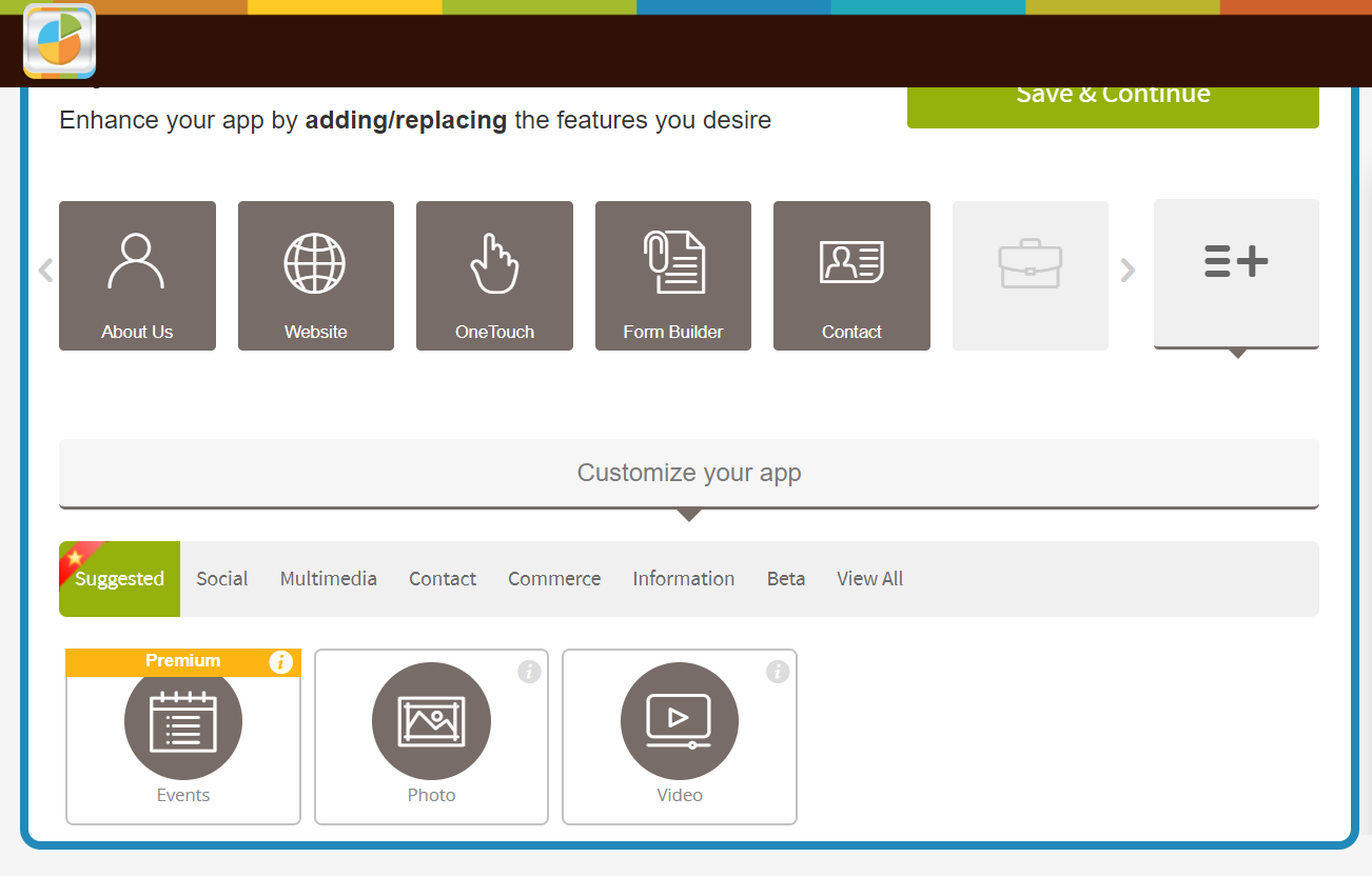 На этом конструкторе кажется можно найти шаблон для чего угодно. Удобный рубрикатор позволит в считанные минуты подобрать скелет будущего приложения как для ресторана, так и для спортивной команды.