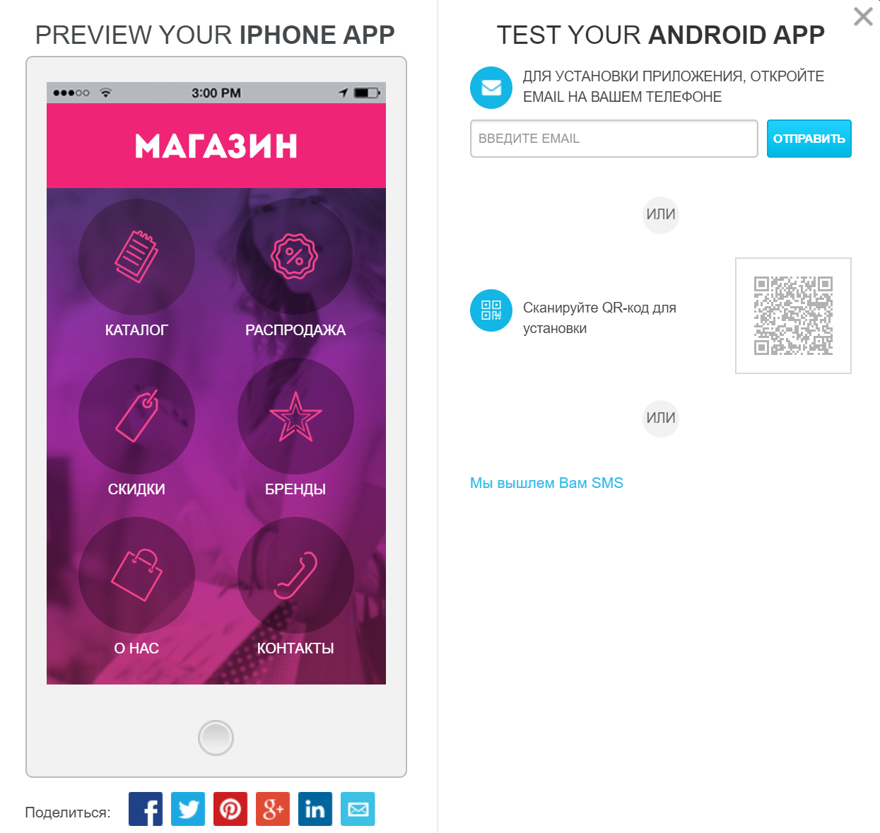 Если планируете создать мобильное приложение с помощью конструктора, арифметика будет совсем другая. Существуют следующие варианты работы с такими программами: