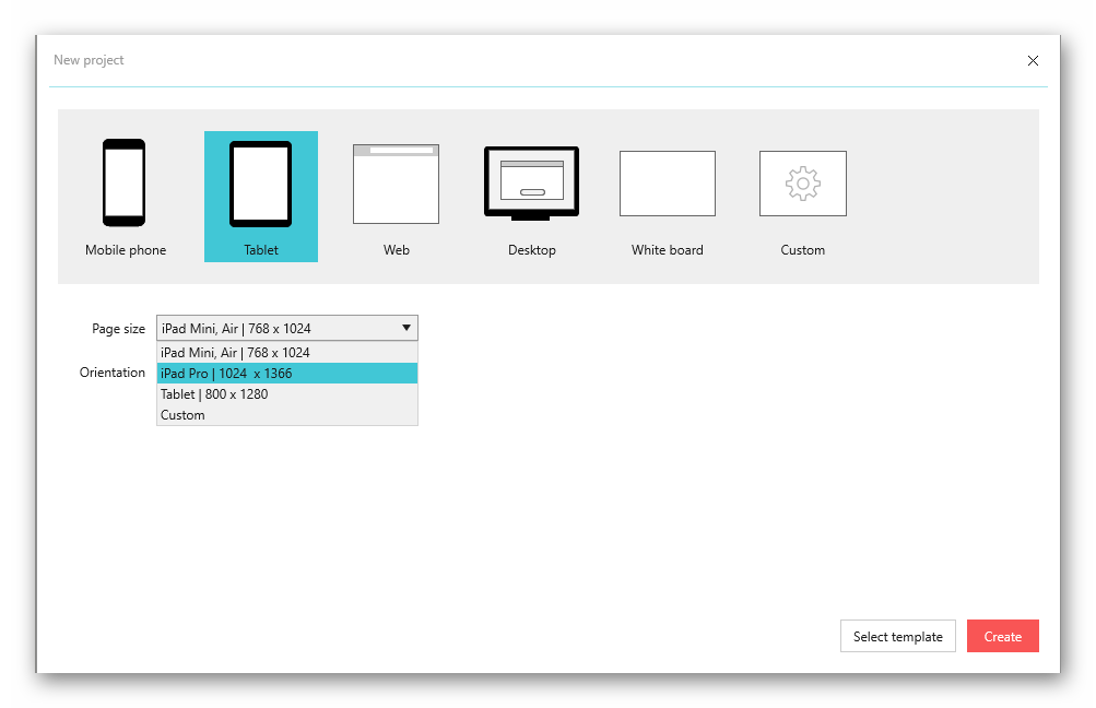 Можно выбрать стандартное разрешение (например, 1024х1366 для iPad Pro)или установить нужный размер