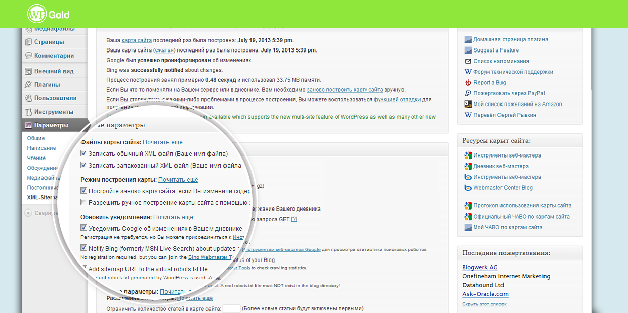 Создать карту сайта для WordPress можно будет с помощью плагина Google XML Sitemaps. Для нее вы сможете произвести множество настроек, которые позволят исключить часть материалов вашего сайта, а также можете задать предполагаемую частоту обновления. Кроме создания карты, плагин Google XML Sitemaps при публикации новых материалов на вашем блоге уведомляет об этом многие поисковые системы, приглашая их побыстрее провести индексацию.