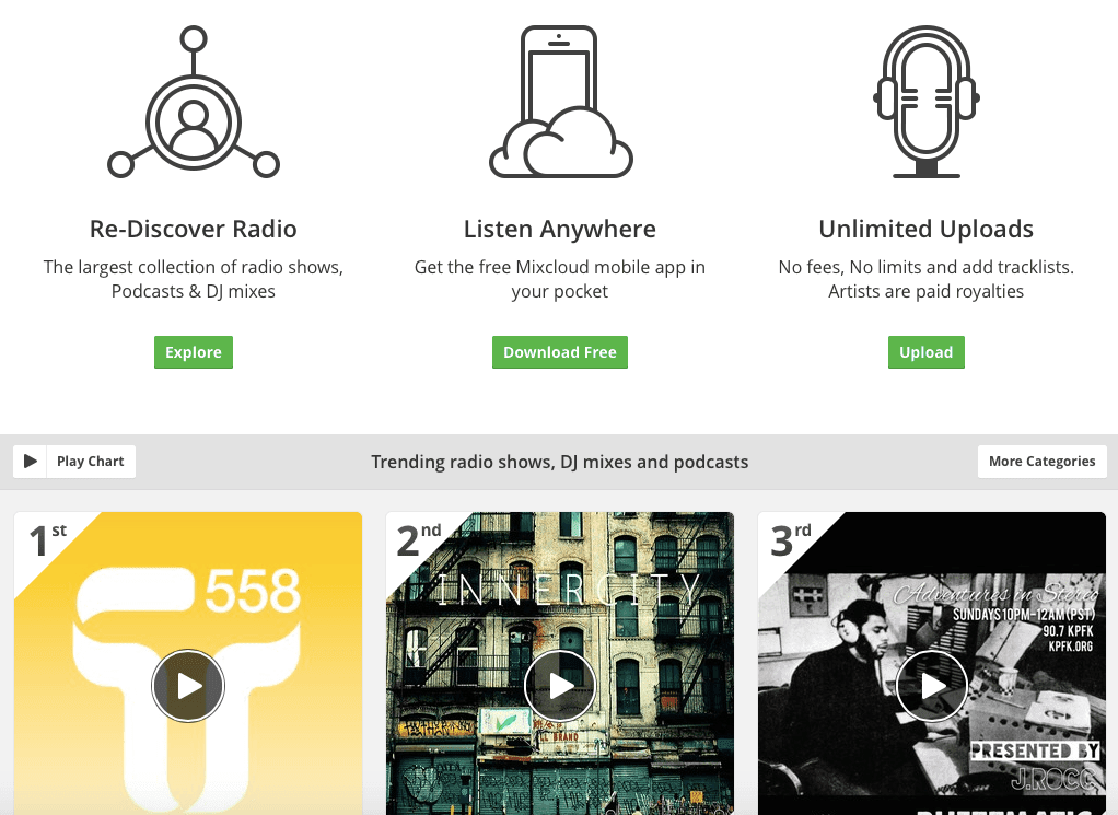 Хотя Mixcloud имеет более ограниченную область действия, чем SoundCloud, так что на это стоит обратить внимание