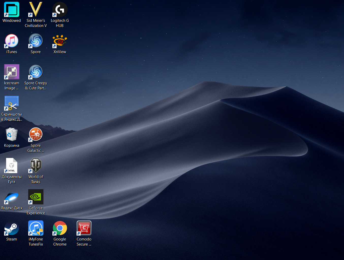 Итак, динамические обои из Mac OS для ПК на Windows, они впервые появились в Mac OS Mojave. На картинке рабочего стола этой операционной системы изображается пустыня Мохаве. В честь которой, собственно, и названа Mac OS 10.14 Mojave. При включении в системных настройках динамических обоев изображение пустыни постепенно меняется, то темнея, то светлея, в зависимости от времени суток. Разные виды Мохаве обеспечивают 16 её фотографий с разной освещённостью в течение суток. При этом освещённость суток имеется в виду локальная, которая в регионе пользователя, а не в местности пустыни.