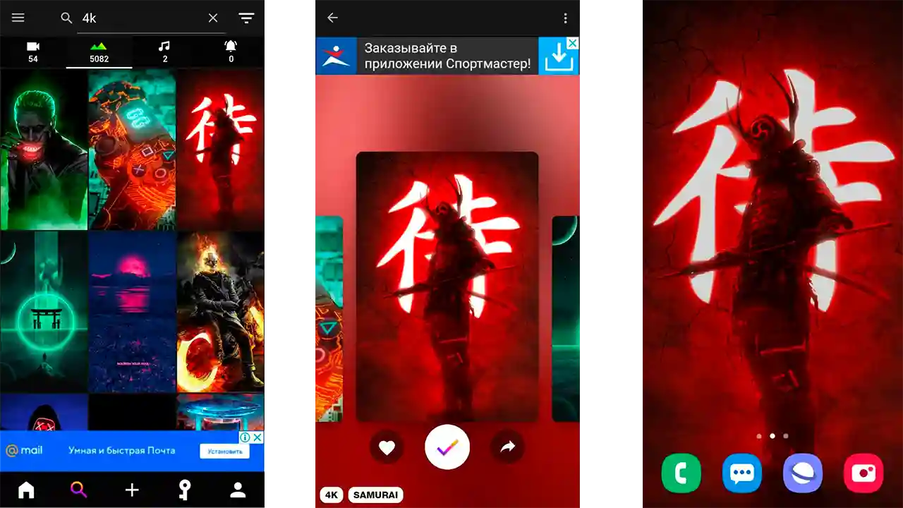 Кроме этого, по желанию в меню можно выбрать 4К, 4D или 3D картинки. А если пользователь ищет что-то конкретное, ему поможет строка поиска.