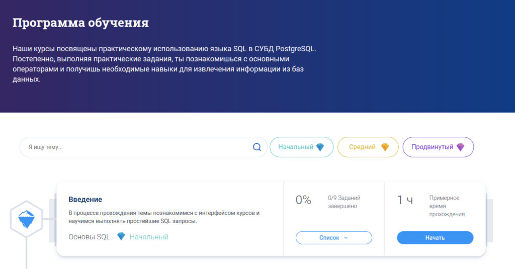 Просле прохождения обучения ты сможешь создавать простые и сложные запросы к БД. Весь курс напичкан практическими заданиями, которые помогут закрепить знания.