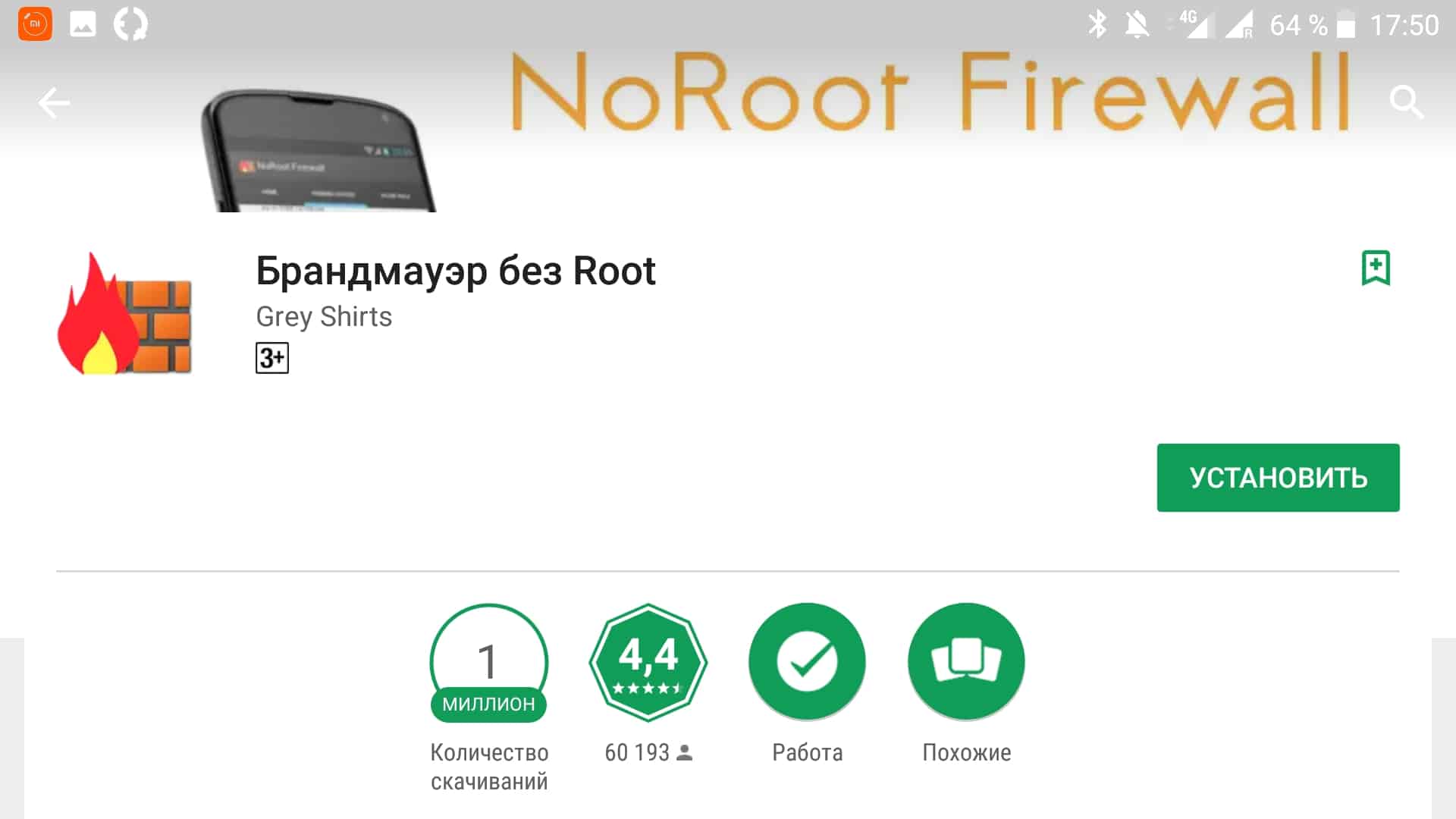 Для начала давайте скачаем приложение. Скачать Брандмауэр без Root бесплатно вы можете по этой прямой ссылке с Google Play.