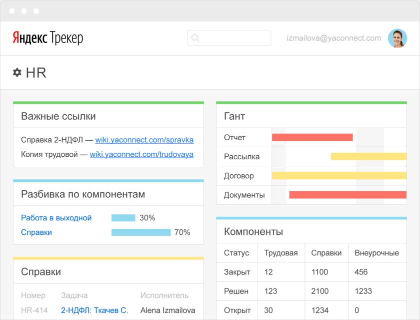 В карточке задачи есть возможность оставлять комментарии, прикреплять файлы и ссылки. Поддерживается работа по методологии Agile. Интеграцию из сторонних сервисов можно настроить по API. Доступна функция просмотра хода работы над проектом на диаграмме Гантта.