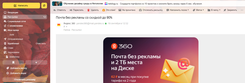 Сервис Яндекс Почта бесплатен и полноценен сам по себе, но чтобы отключить рекламу и получить ряд дополнительных улучшений, можно оформить платную подписку Яндекс 360.