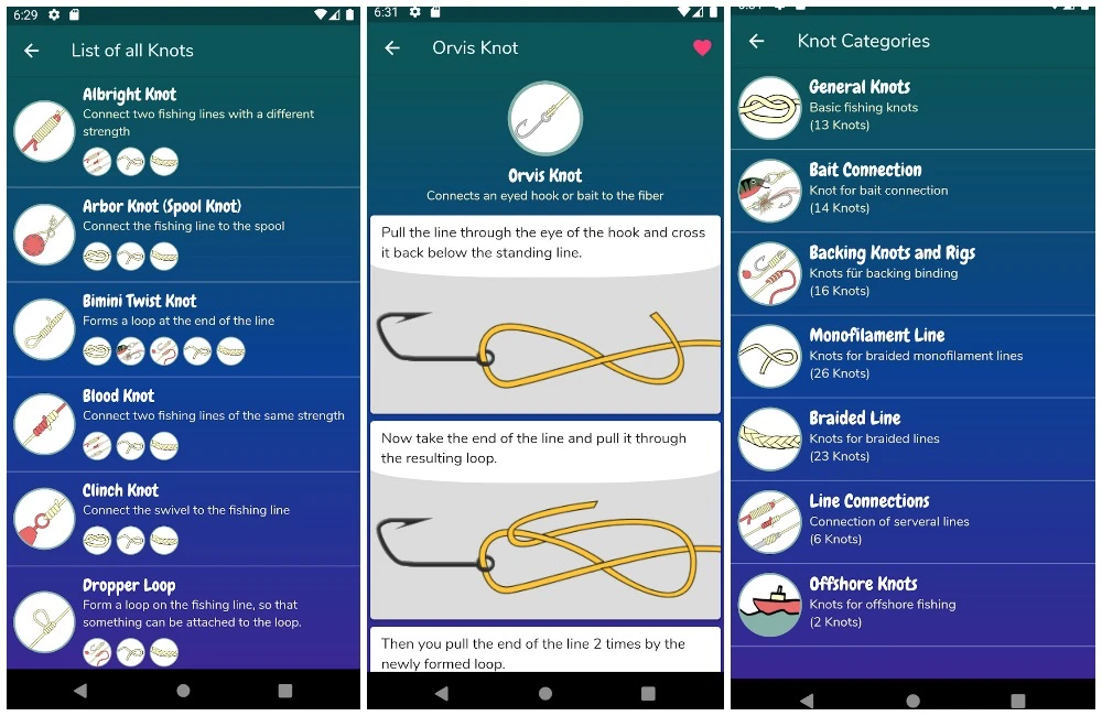 Вязание узлов — это искусство, и с таким количеством вариантов, которые зависят от наживки и крючка, наличие полезного руководства по завязыванию узлов может стать шпаргалкой, которая вам понадобится для вашей следующей рыбалки. Приложение даже предлагает советы, которые рассказывают, как завязывать узлы с помощью различных типов лески, будь то плетеная леска или прочная оффшорная леска. Лучше всего то, что приложение хорошо масштабируется на планшетах и телефонах, что означает, что вы можете использовать его на дисплее планшета вашей лодки (если он работает под управлением Android) или на вашем телефоне.