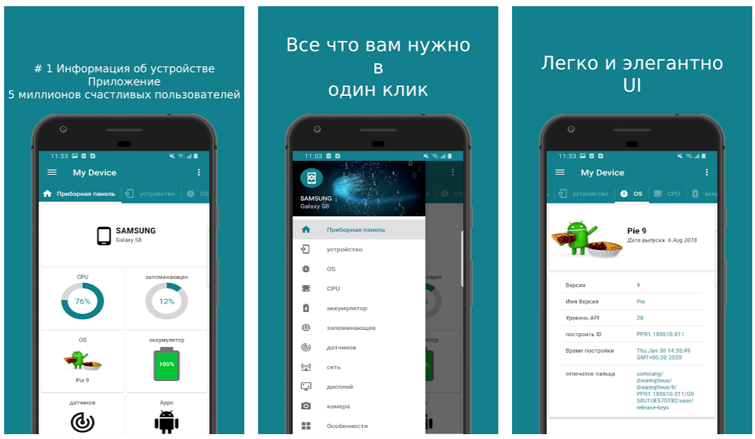 В Google Play доступен целый ряд бесплатных программ, которые автоматически определяют модель смартфона и показывают все его технические характеристики. Перечислим наиболее популярные из этих приложений.