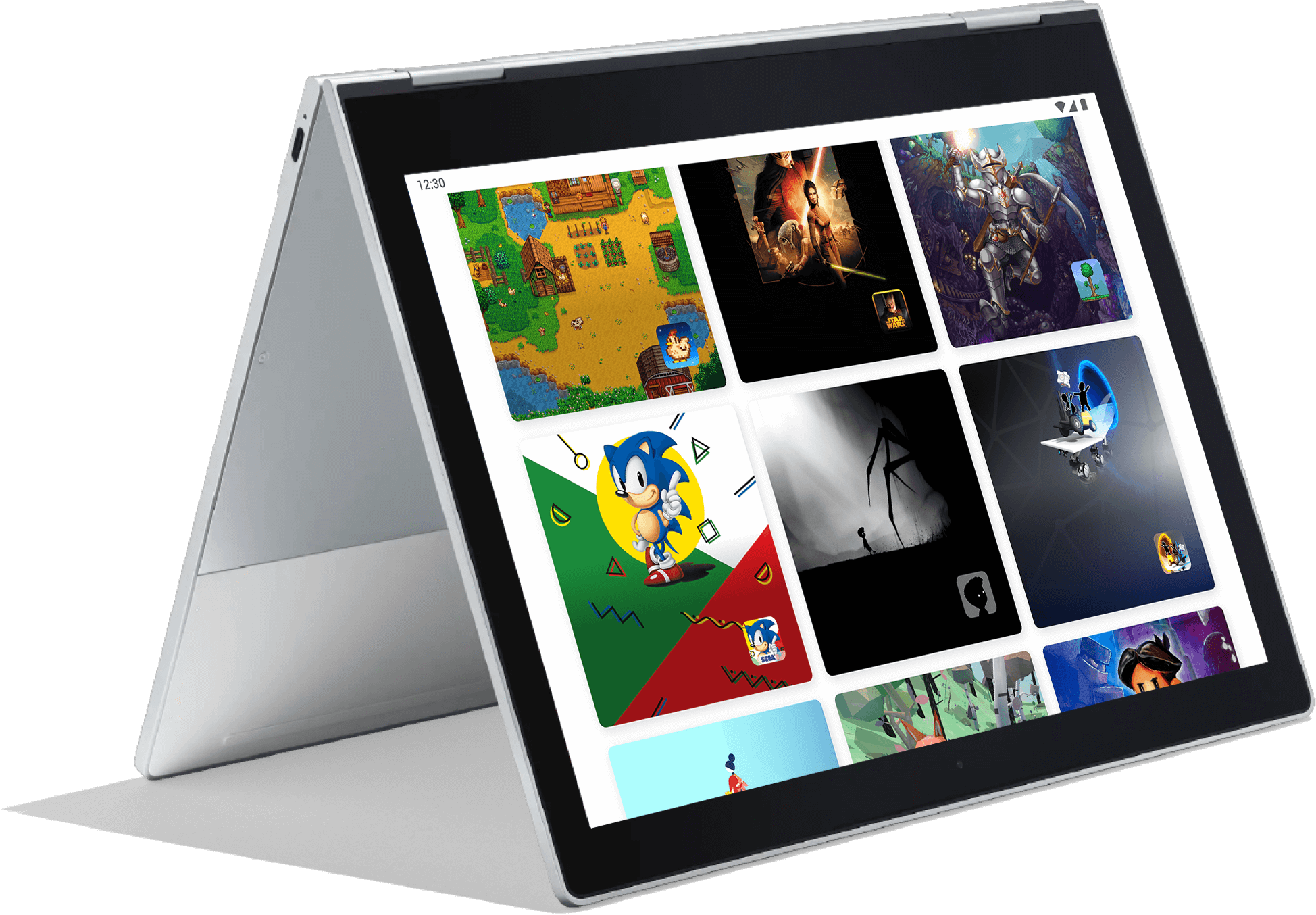 Из-за подобного подхода список игр и приложений не впечатляет. Поначалу глаза разбегаются, но разбежавшимся глазам зацепиться не за что. Titan Quest, Terraria и Knight of the Old Republic в представлении не нуждаются. Из недавних хитов — Dead Cells. На этом громкие имена заканчиваются. Это не значит, что в нескольких сотнях инди-игр нет достойных проектов.