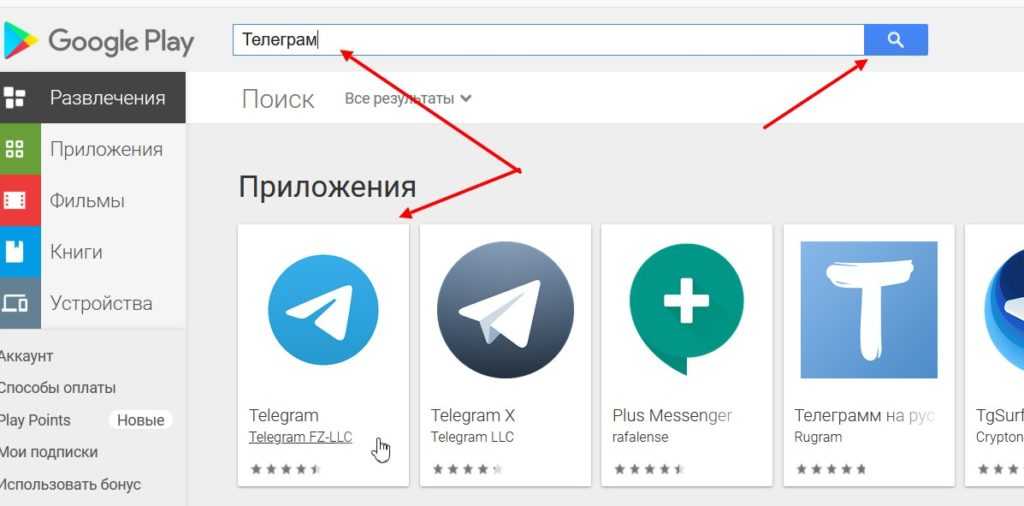 Если вы желаете работать с Телеграмом на телефоне, для этого наберите в Google Play название программы и найдите ее (скрин 3).