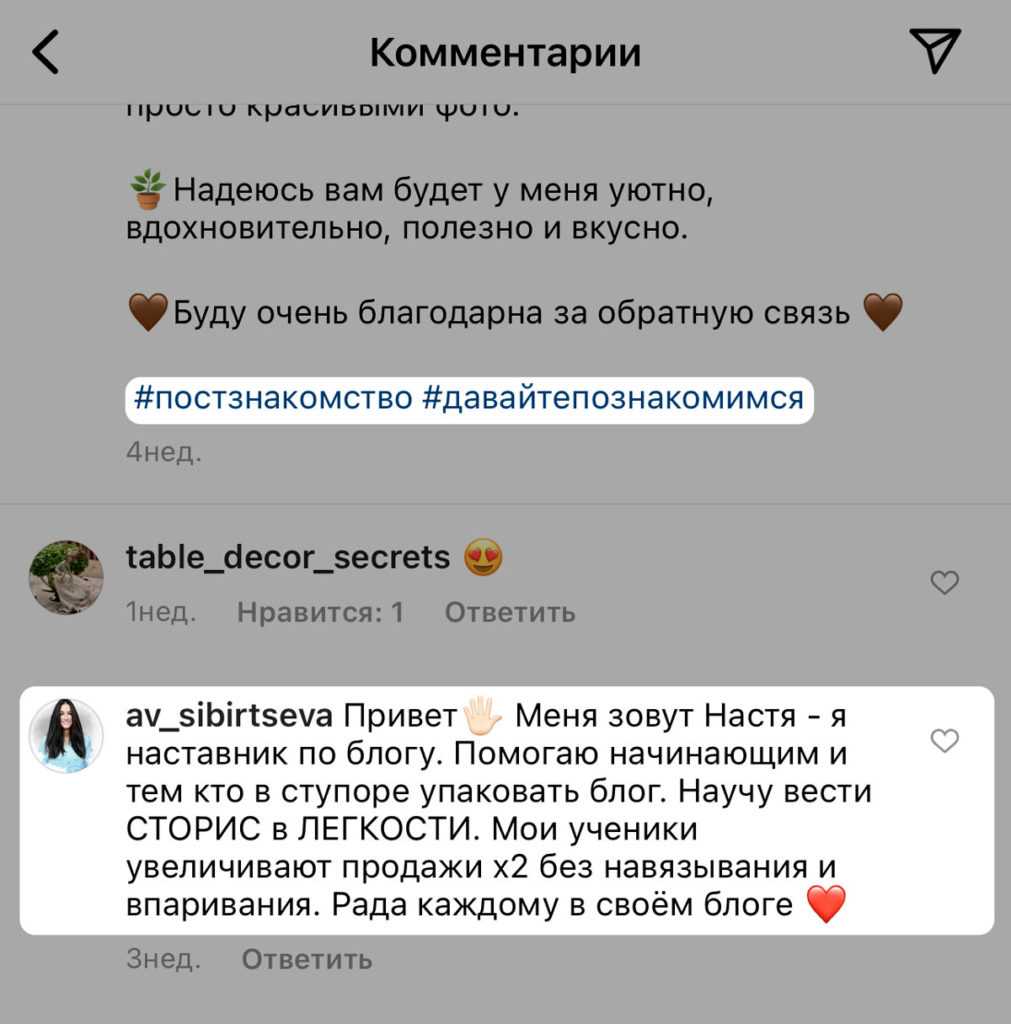 В посте как раз использованы нужные нам хештеги, а ниже пример такого комментария