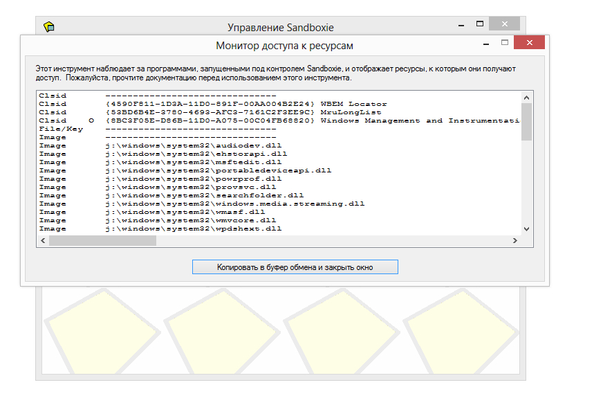 В Sandboxie обнаруживается очень полезный инструмент — монитор доступа к ресурсам. Посредством его ты можешь отследить запросы приложения к ресурсам. Эта информация нужна как для собственно контроля, так и для составления пользовательских правил блокировки.