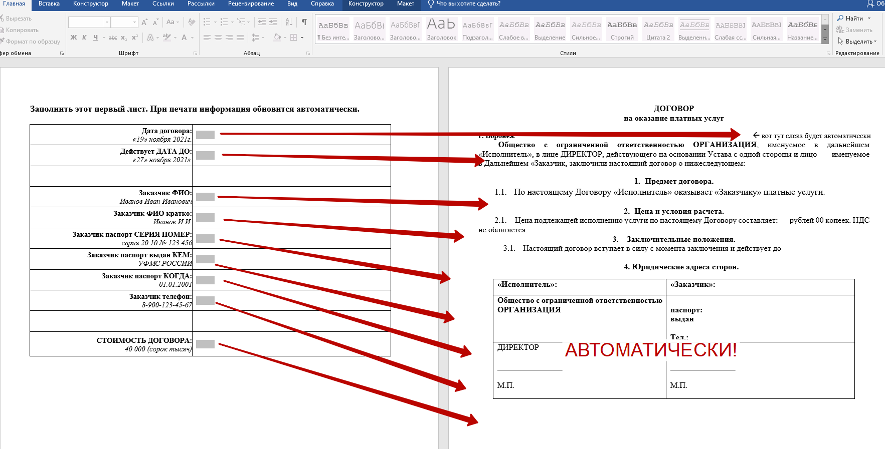 надстройка для заполнения договора между юридическими лицами (сокращенный вариант)