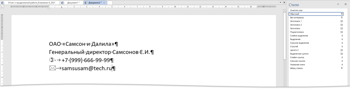 Как видите, полностью сохранено форматирование фрагмента текста. Вставленный фрагмент никак не влияет на имеющиеся стили текста, чего не скажешь о буфере обмена.