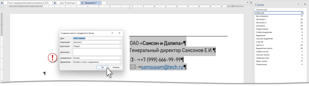 Создаем новый экспресс-блок в MS Word и прощаем себе жизнь