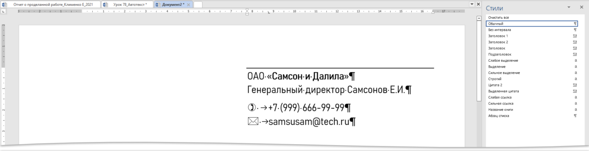 Для начала разберем чисто практический пример часто используемого шаблона – подпись руководителя и реквизиты компании. Откуда обычно вы берете эти данные? Большинство даже квалифицированных пользователей MS Word просто копирует их из другого документа. Но давайте уже будем рациональны!