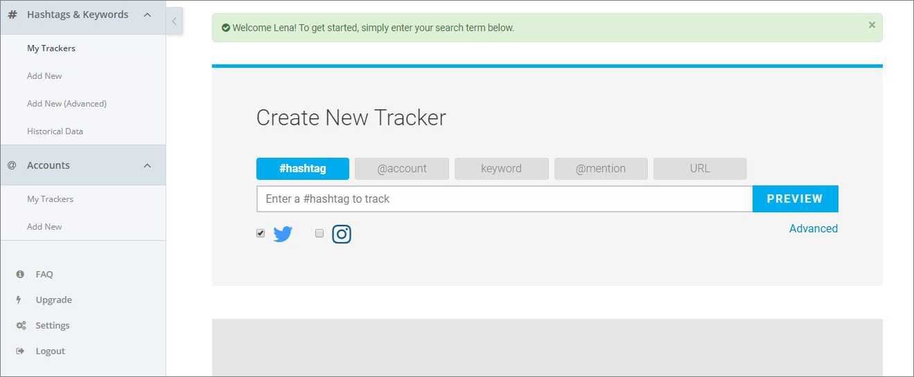 Сервис позволяет отследить статистику по твитам, настроить мониторинг упоминаний бренда, конкурентов по ключевому слову, хэштегу или ссылке, а также получать уведомление о новых упоминаниях на электронную почту.