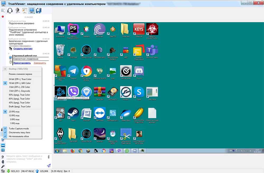 Ранее мы говорили об одном из режимов взаимодействия — режиме управления. В нем администратор может использовать клавиатуру и мышь, при этом вводимый текст, передвижение курсора будет передаваться в режиме реального времени, без задержек. Отображение изображения удаленного компьютера производится либо в отдельном окне, либо на весь экран. Для выхода из полноэкранного режима предусмотрена специальная панель, отображаемая на рабочем столе. Следующий режим предназначен для наблюдения за работой компьютера. Ограничение состоит в невозможности управлять рабочей станцией, передача текста с клавиатуры или передвижение мыши невозможны, только наблюдаем за работой пользователя. Этот режим самый излюбленный у начальников, которые хотят в любое время посмотреть, чем занят его сотрудник – работает ли он или проводит время в социальной сети.
