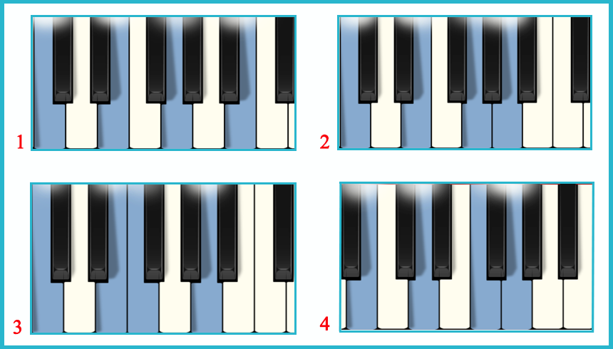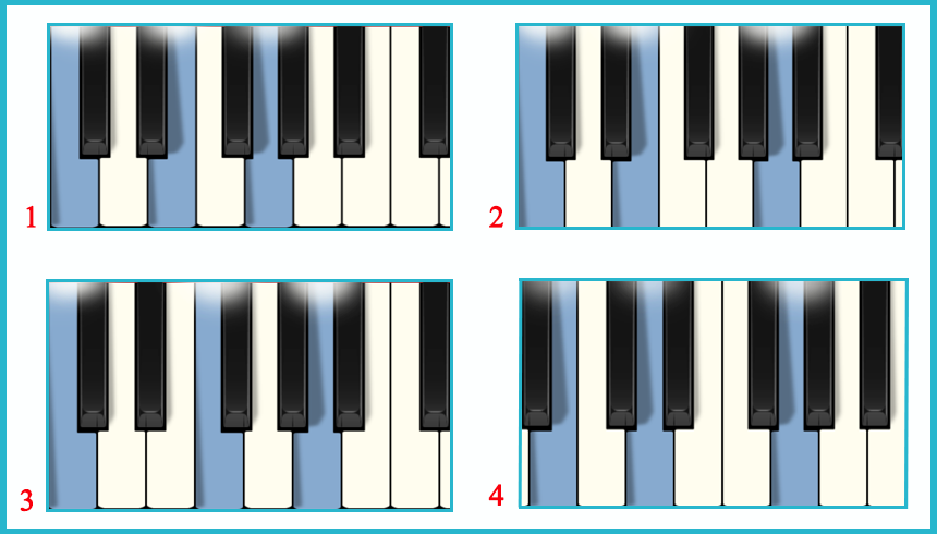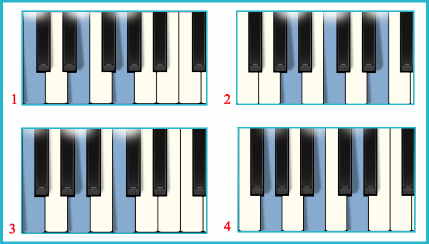 Черные клавиши тоже повторяются в каждой октаве, но они представлены в двух группах: по две и по три клавиши.