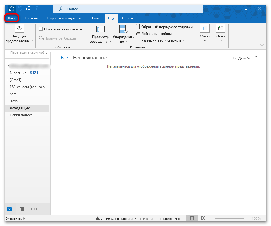 - В профиле должен быть новый файл персональных папок (PST).