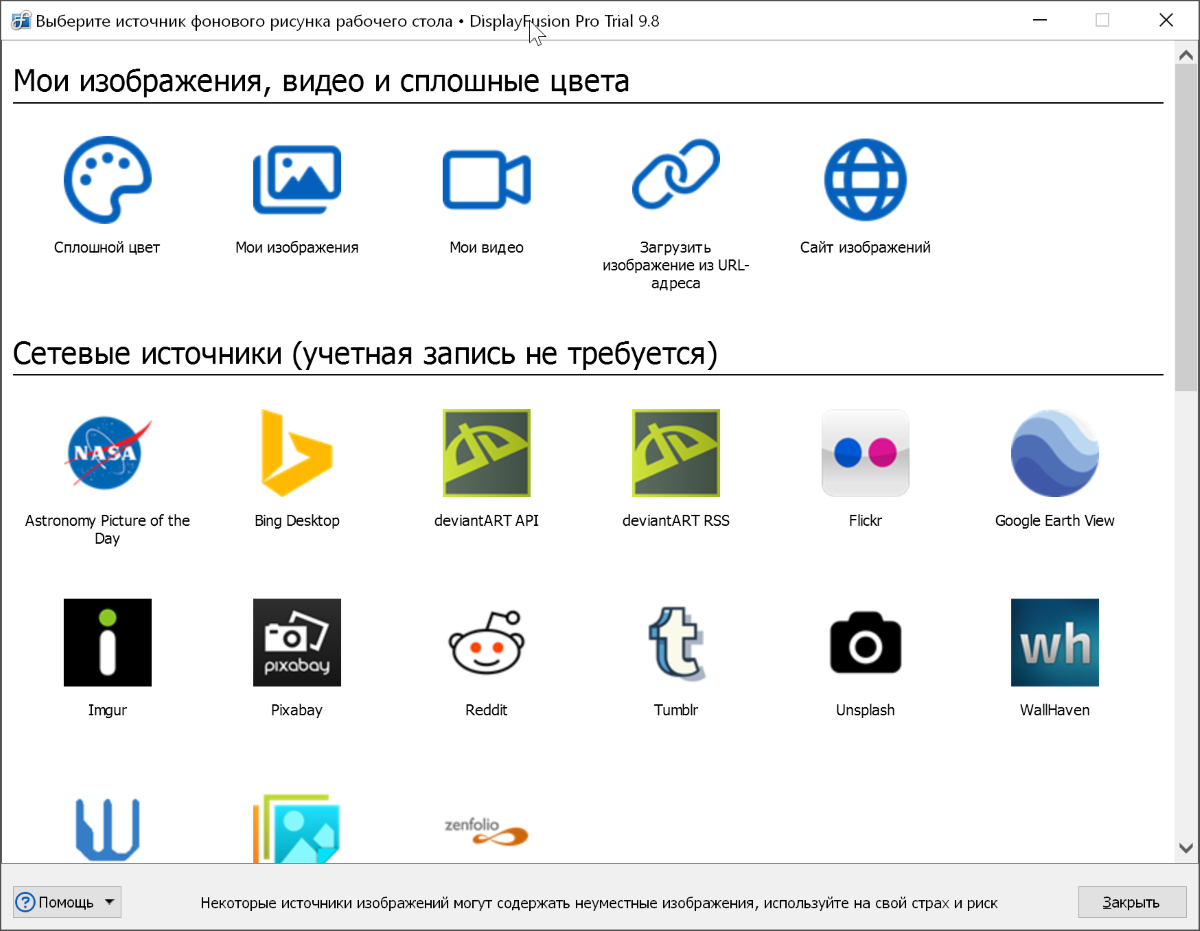 Начиная с настроек обоев, Display Fusion позволяет вам выбирать другие обои для ваших мониторов, которые по умолчанию не предлагаются в Windows.