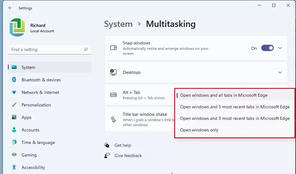 В Windows 11 вы можете выбрать, что вы хотите показывать при нажатии Alt + Tab, и ниже показано, как настроить эти параметры.