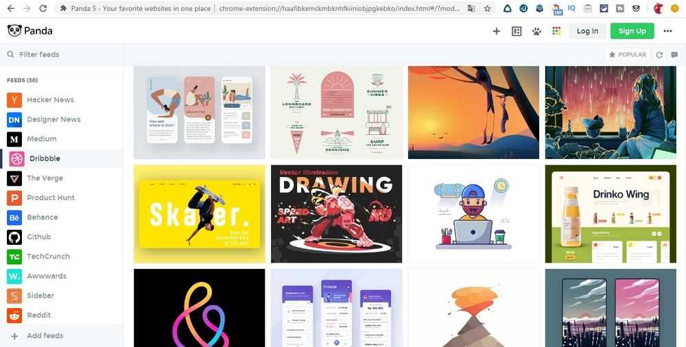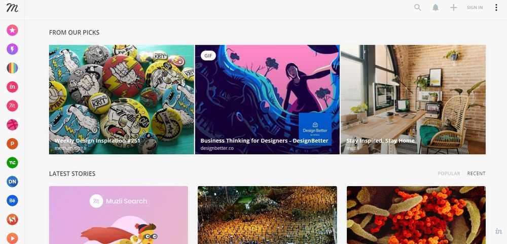 Сборщик новостей из мира дизайна и технологий со всего интернета (к сожалению, только англоязычного). Здесь можно читать статьи из Medium, GitHub, Reddit и других популярных сайтов, а также вдохновляться работами дизайнеров с Dribble, Behance, Awwwards. Всего доступно 30 источников, но можно подключать свои.