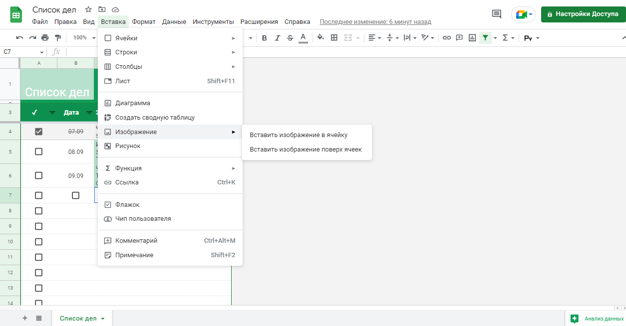 - можно вставить изображение внутрь ячейки и форматировать его там, а можно использовать вставку поверх ячейки — тогда вы сможете свободно его передвигать, сжимать и растягивать поверх сетки;
