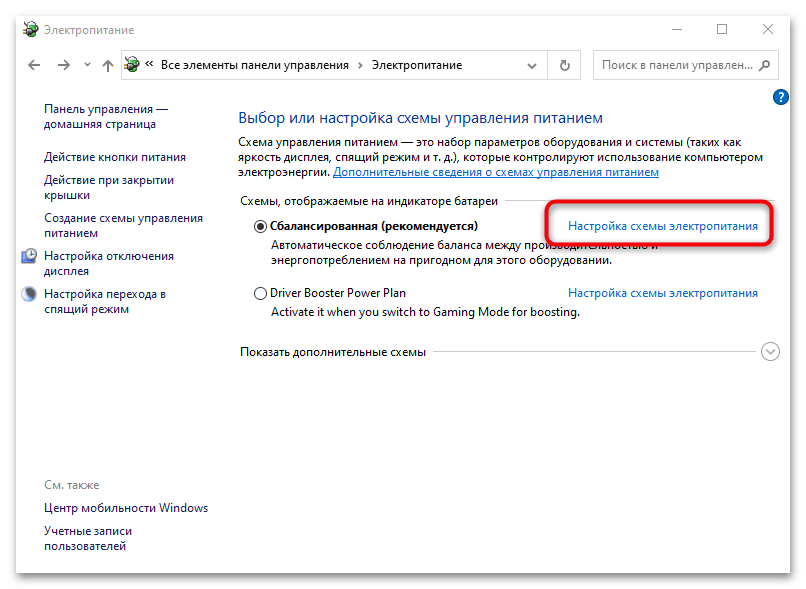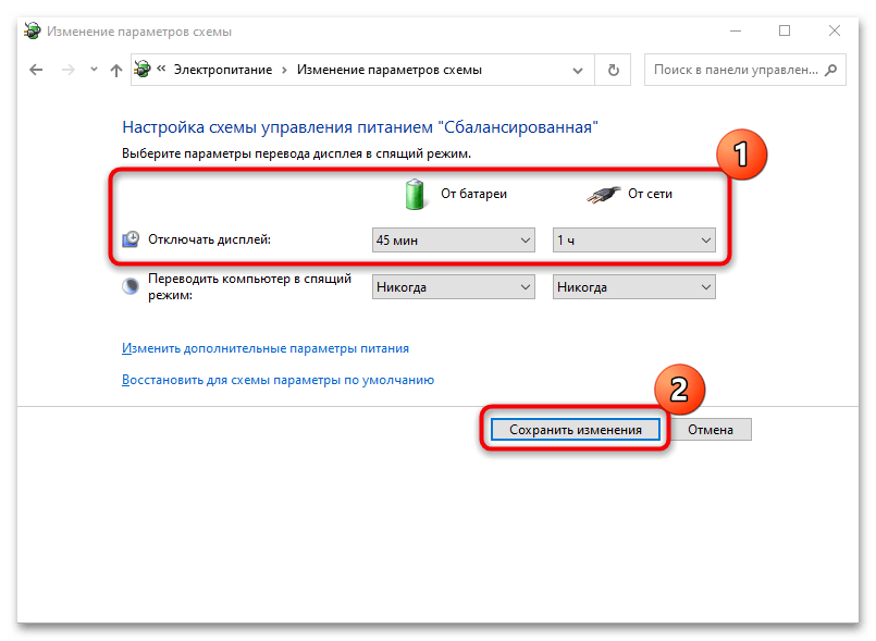 Также параметры позволяют задать время бездействия пользователя, по истечении которого экран ноутбука выключится автоматически. Для этого в разделе «Электропитание» нажмите на ссылку «Настройки схемы электропитания» рядом с используемым режимом.