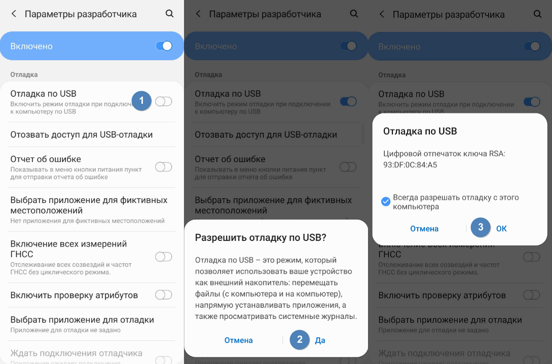 Для этого выберите «Настройки», прокрутите вниз до пункта «Об устройстве» и семь раз нажмите «Номер сборки». Это откроет вам скрытое меню разработчика. Вернитесь в «Настройки», выберите «Параметры разработчика» и нажмите «Отладка по USB». Установите флажок напротив пункта «Отладка по USB».