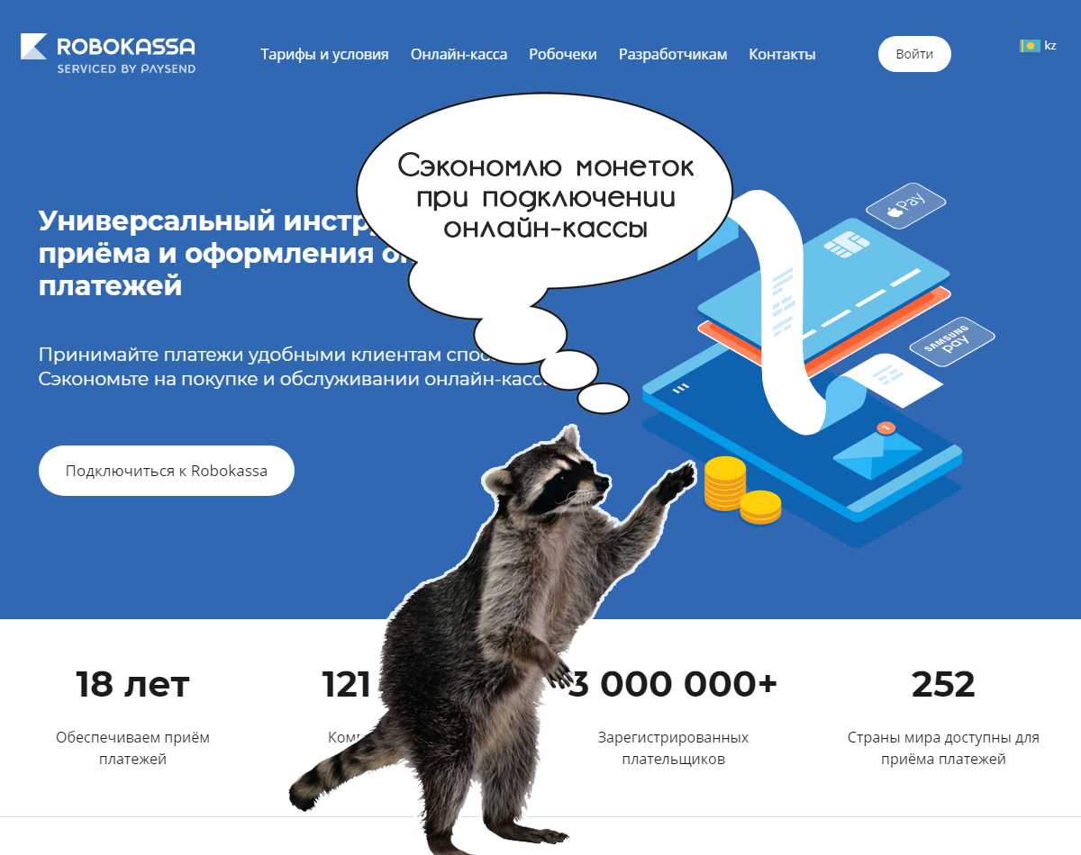 Основное преимущество Робокассы — это “Робочеки”. Они позволяют отправлять чеки без установки онлайн-касс. Это экономит 23-30 000 рублей ежегодно.