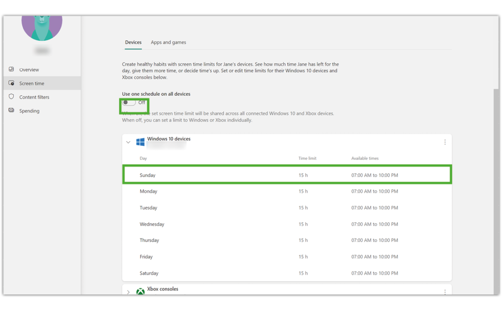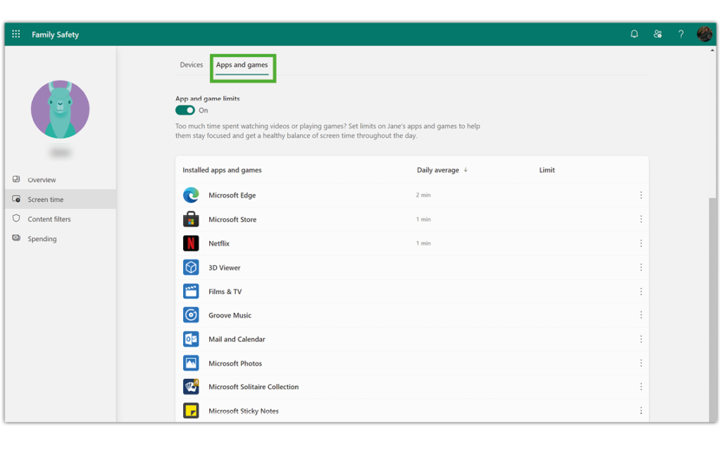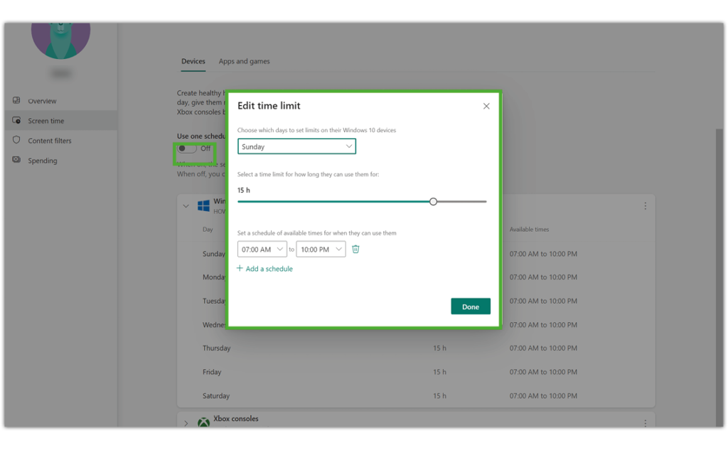 Шаг 1 — От ваш счет, поиск семейные варианты в левой строке поиска. Нажмите Семейные варианты.Шаг 2 — Нажмите Просмотр семейных настроек и нажмите на свой профиль ребенка. Нажмите Время экрана из меню слева.Шаг 3 – Здесь вы увидите разбивку времени, проведенного на каждом устройстве, которое использует ваш ребенок, а также то, как это время Приложения и игры, Прокрутите вниз и нажмите Включить ограничения установить ограничения времени экрана.Шаг 4 – Выбрать и установить, сколько времени ваш ребенок может тратить на своих устройствах или в определенных приложениях и играх в день. Это полезно, если вы хотите уделять им больше времени в выходные дни, чем в школьные вечера. Просмотрите это во время школьных каникул, если это уместно.