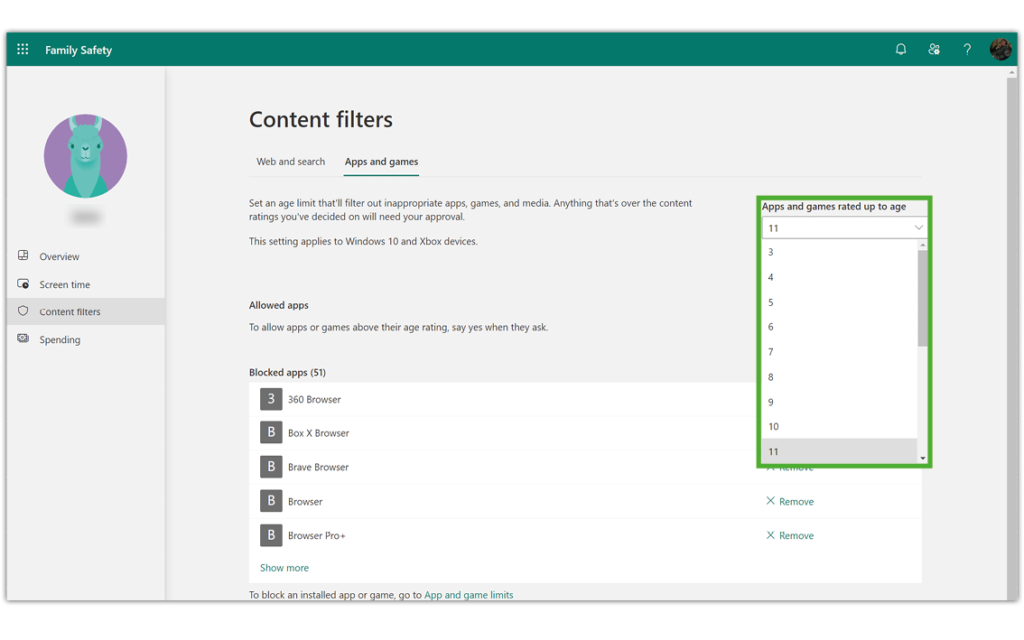 Точно так же вы можете контролировать доступ вашего ребенка к приложениям и веб-сайтам. Microsoft также добавила веб-фильтры и фильтры поиска, чтобы ограничить просмотр сайтов, удобных для детей.