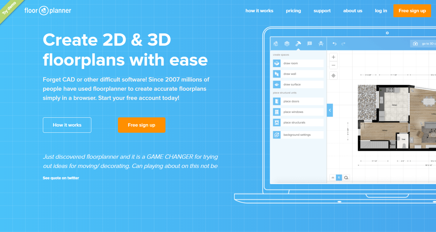 - Floorplanner — бесплатное приложение, удобное для создания фантастических дизайнов полов.