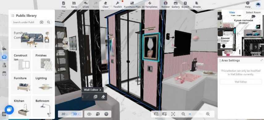 Но еще больше впечатляет неограниченный рендеринг среднего качества, а по платной подписке вам будет доступно 300 рендерингов в месяц в формате 4K, который находится на уровне визуализаций проектов ведущих интерьерных студий. Эта программа дизайна доступна и на русском языке.