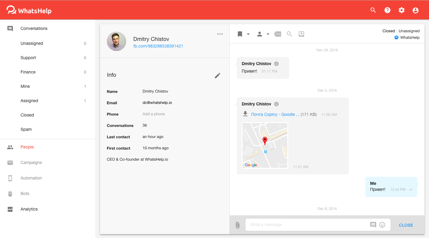 WhatsApp — пока нет аккаунтов для компаний. Часто компании пробуют использовать обычные пользовательские аккаунты (в виде телефонного номера) для общения с клиентами. У такого подхода есть только один плюс — это самый популярный мессенджер в России — и 1001 минус, начиная от легальности и заканчивая баном номера.