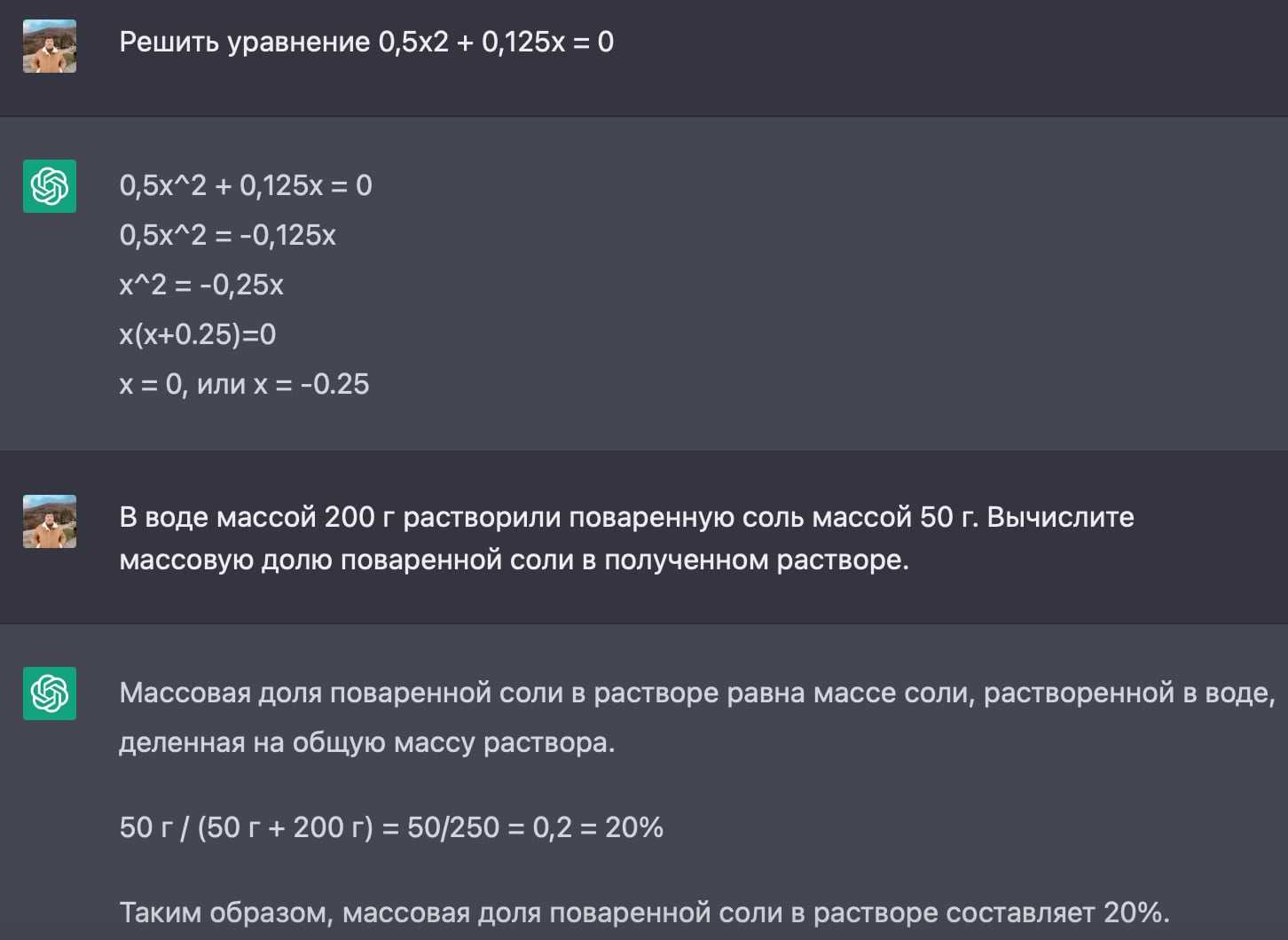 ChatGPT может решить уравнения и задачи по математике и химии за 8 класс. С ЕГЭ по математике он не справился.