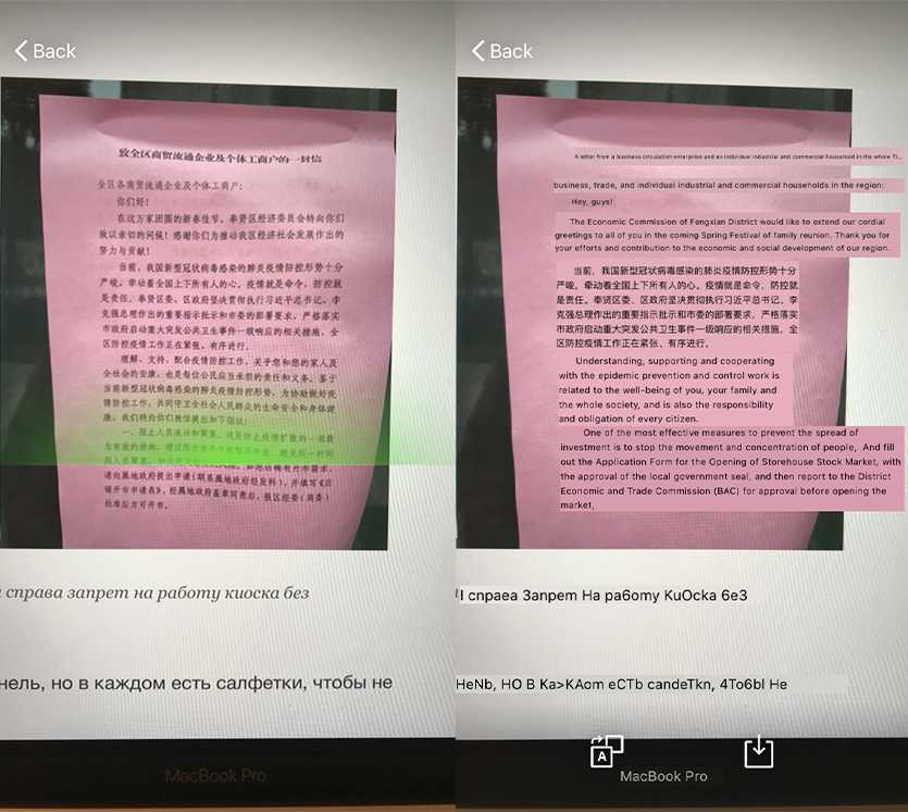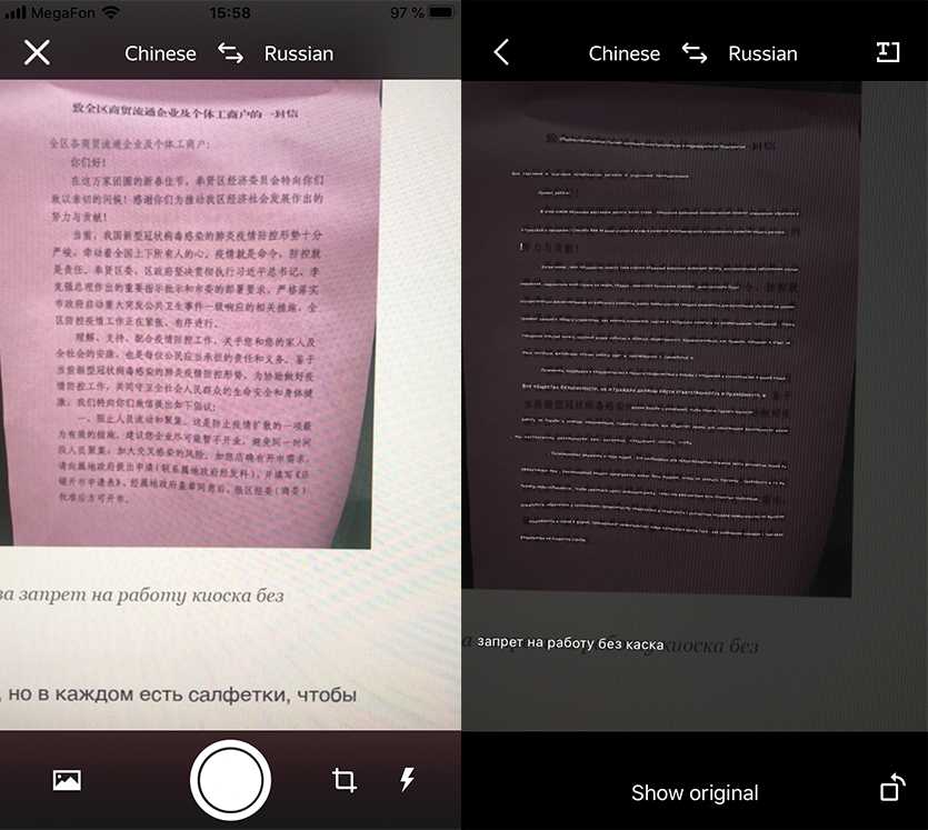 Вторым был Яндекс.Переводчик. Он полезен, чтобы распознать китайский текст и отправить его кому-нибудь. И удобнее, потому что результат не выходил за рамки изображения.