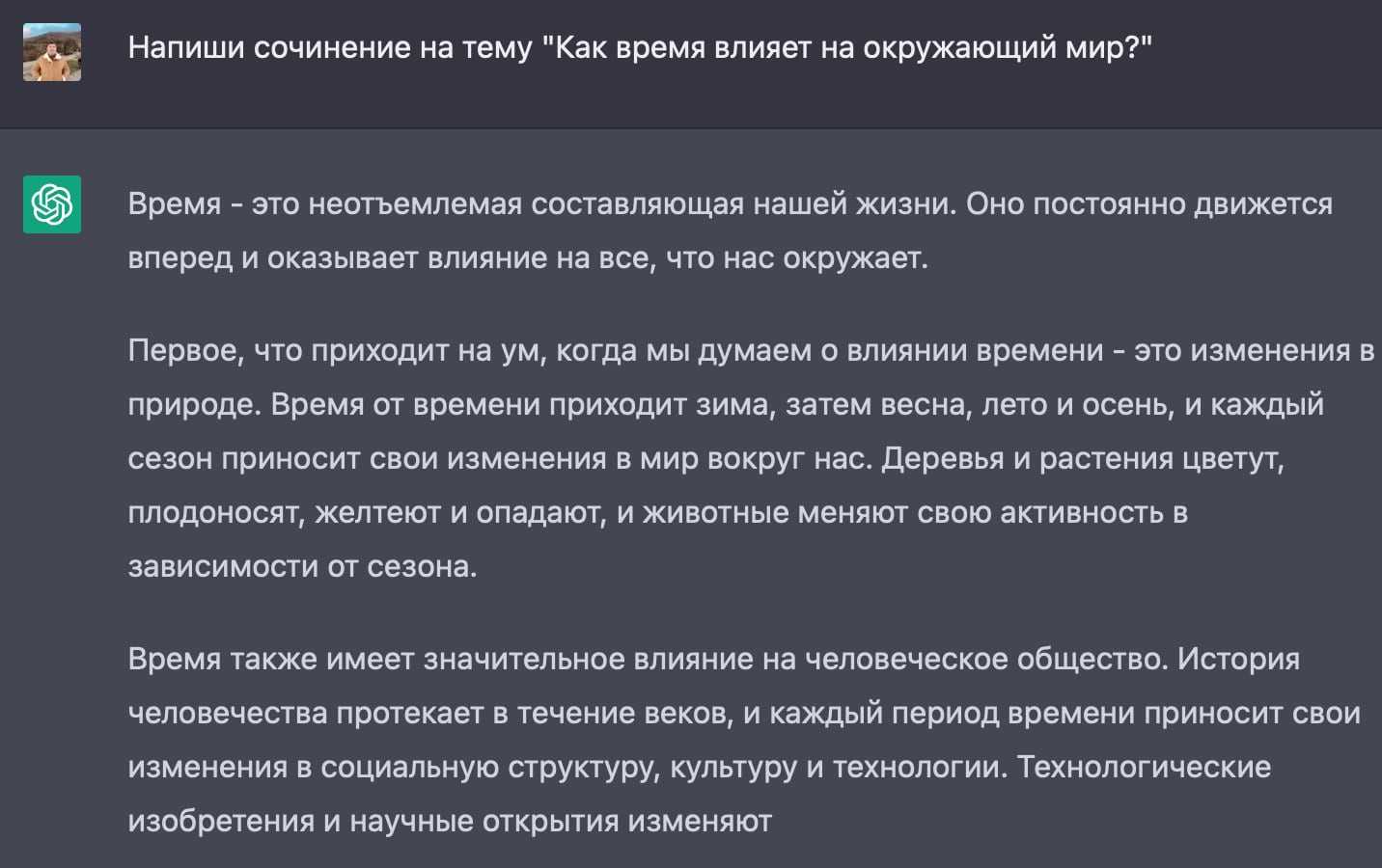 ChatGPT подойдет для написания простых сочинений на русском языке. Но для ЕГЭ и ОГЭ его не получится использовать, потому что нейросеть не знает структуру сочинений школьных экзаменов.