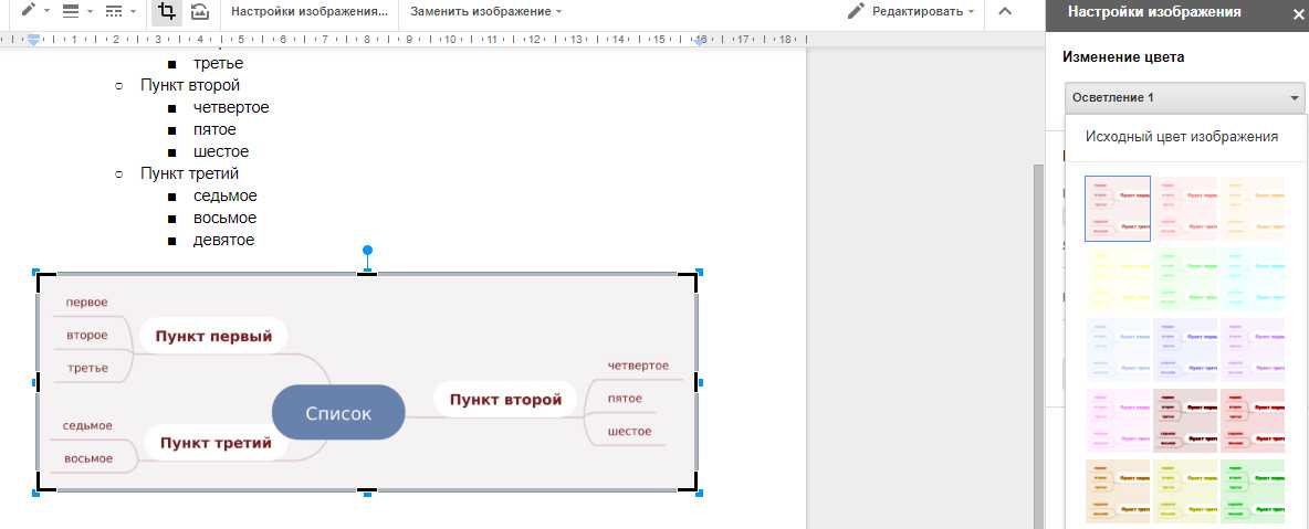 Нужно собрать список из пунктов с подпунктами, выделить его и запустить расширение. Оно автоматически соберет ветвистый список в ментальную карту в JPEG.