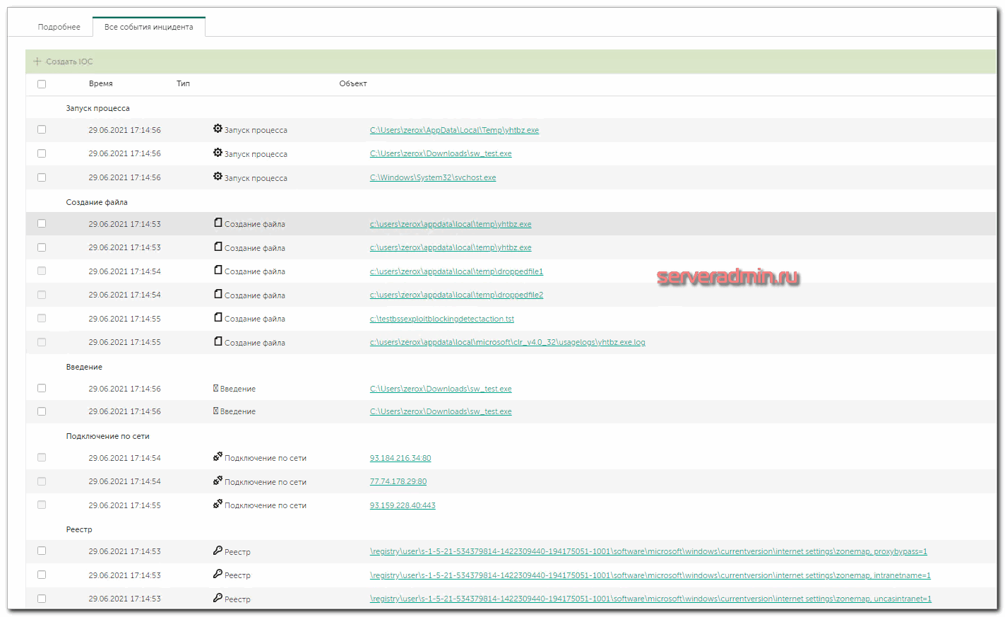 Наглядно всё это можно посмотреть в отдельной вкладке — Все события инцидента.