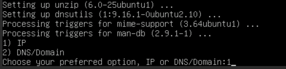 Во время установки у нас спросят: IP или DNS — выбираем IP: