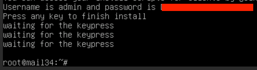Когда всё будет готово, скрипт отдаст нам пароль администратора и публичны ключ — они нам понадобятся в будущем: