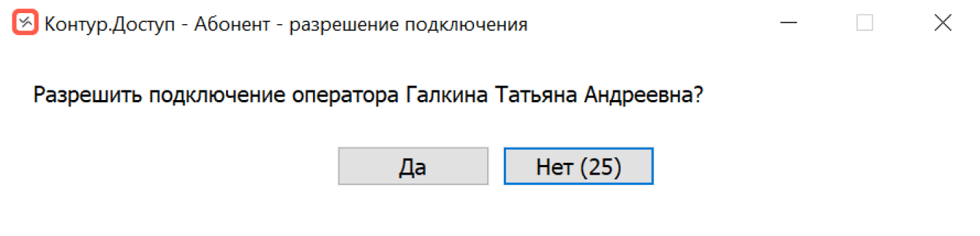 - Абонент видит на своем экране запрос и может разрешить оператору работать через Контур.Доступ с правами администратора.