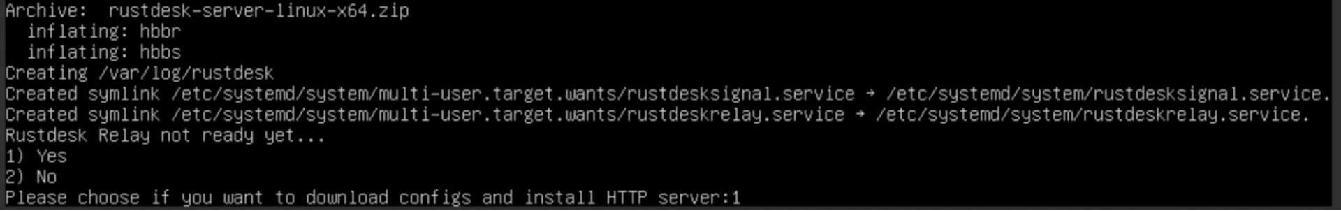 Дальше скрипт нам предложить скачать HTTP-сервер, который нужен для работы программы. Соглашаемся и вводим 1: